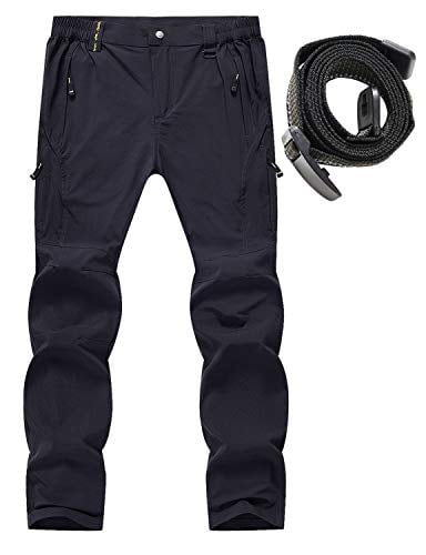 Rdruko Men S Outdoor Hiking Pants Lightweight Waterproof Fishing Travel Pants With Belt Navy Us L Walmart Com