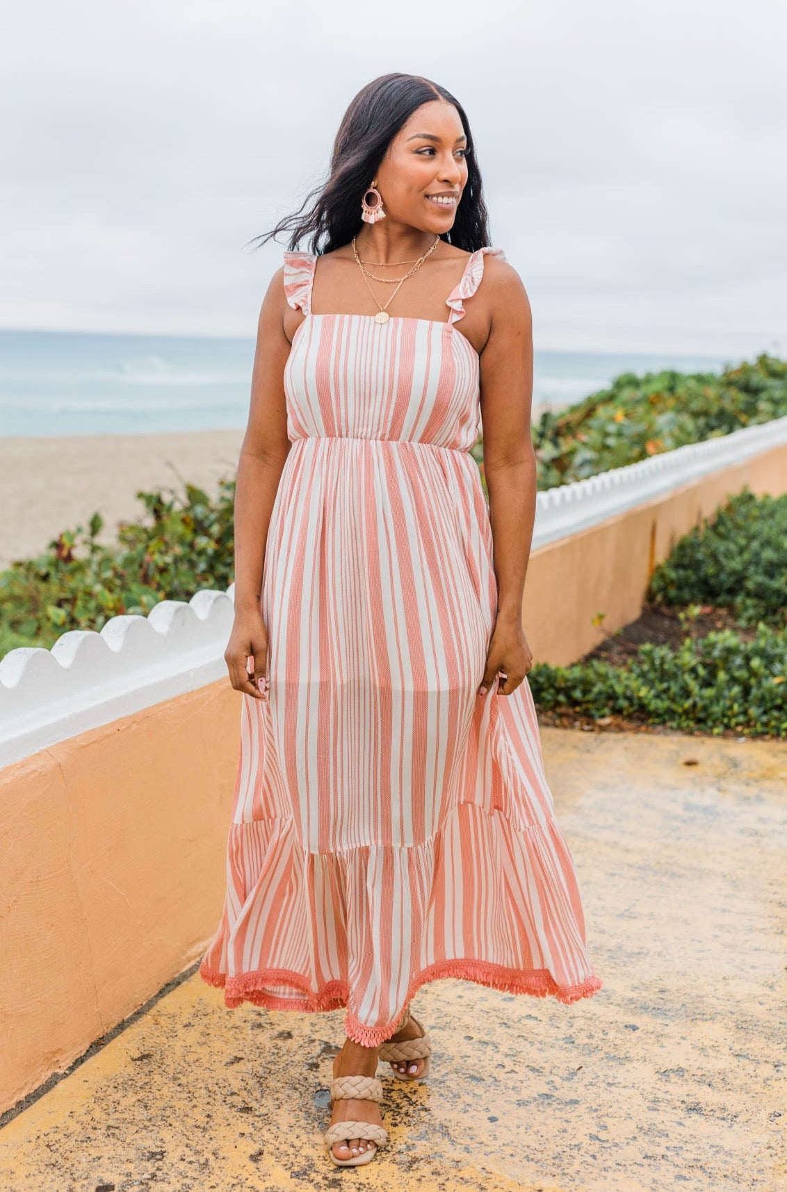 Beachy Feels Maxi Dress Coral Ivory The Pulse Boutique